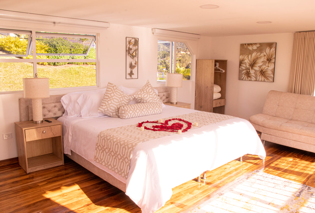 Nuestras habitaciones han sido diseñadas cuidadosamente para brindarte una estancia única. Disfruta de confort, elegancia y vistas privilegiadas hacia el embalse y las montañas que rodean El Nido Hotel Guatapé.